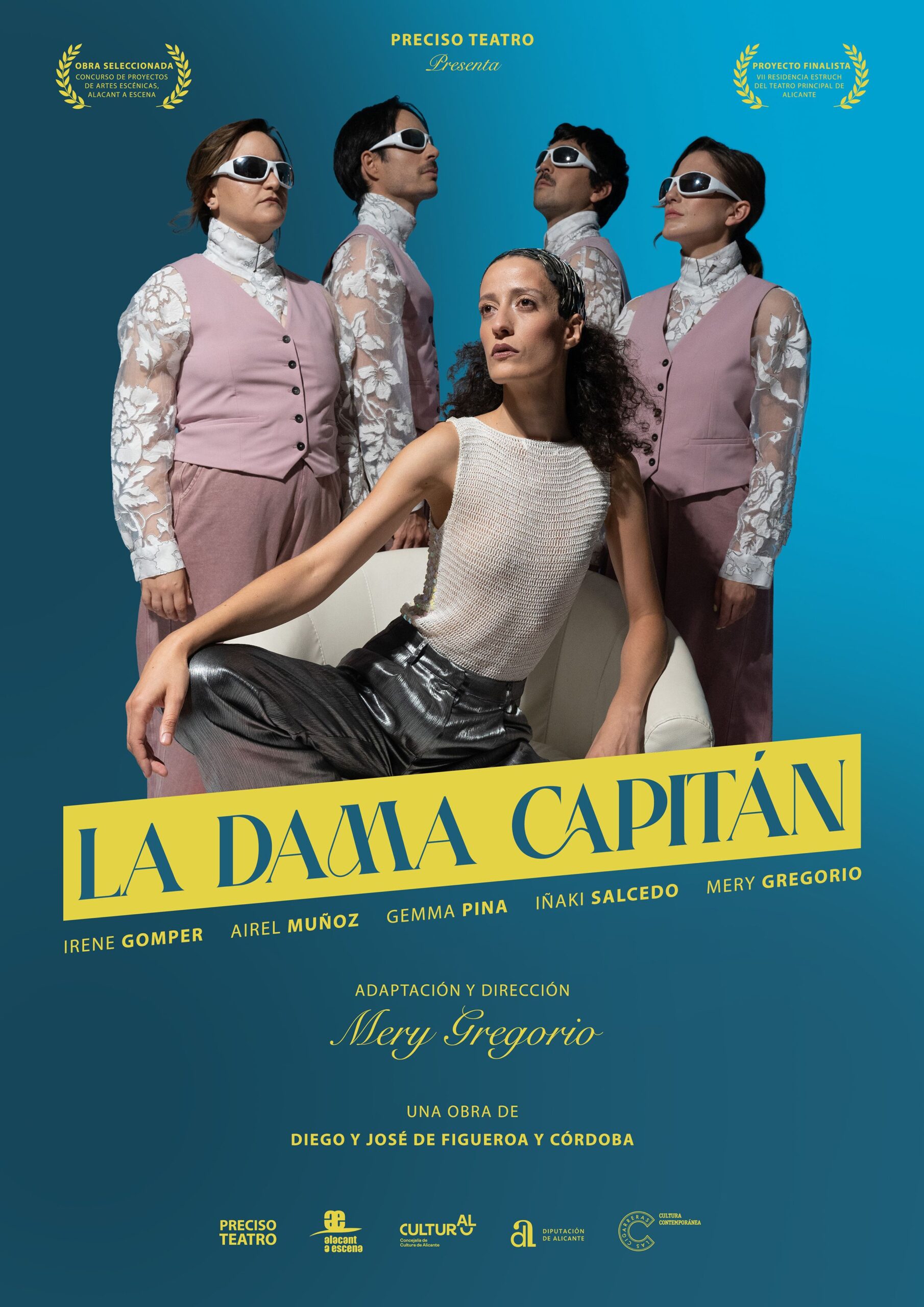 No sabemos si actuamos con acierto y destreza, pero sí que PRECISAMOS TEATRO. La Compañía Preciso Teatro nace con el deseo profundo de seguir haciendo teatro. Cinco compañeros de escuela con mucha capacidad de análisis, compromiso feminista y grandes dotes de comedia, tienen ganas de crear. Buscando rescatar algún personaje histórico femenino encuentran un texto desconocido y de ahí nace una investigación. Nuestro primer proyecto, ‘La Dama Capitán’, ha sido seleccionado en el Concurso de Proyectos de Artes Escénicas Alacant a Escena 2024.
